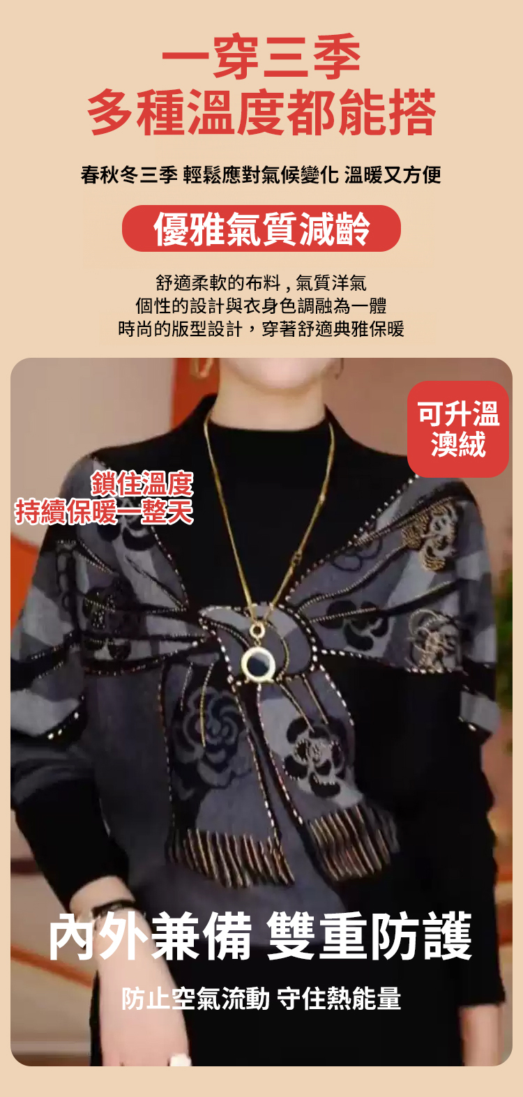【顯瘦5kg】減齡百搭遮肚打底衫,雙面澳絨,保暖不臃肿