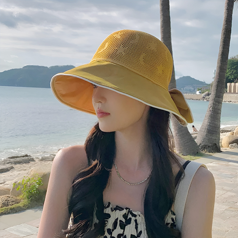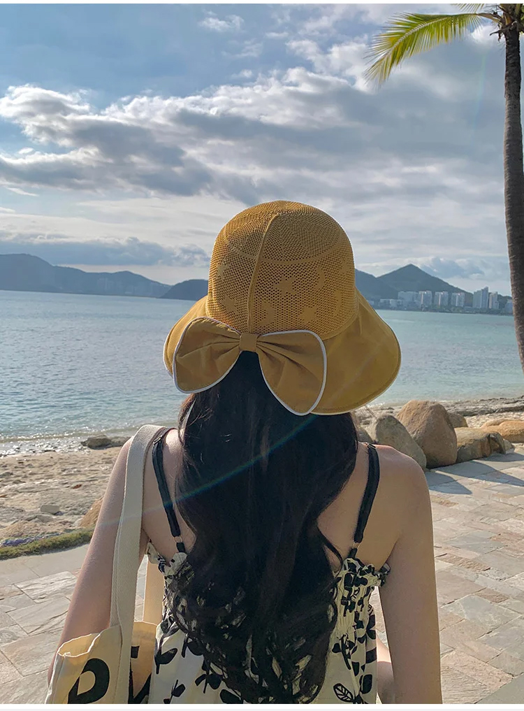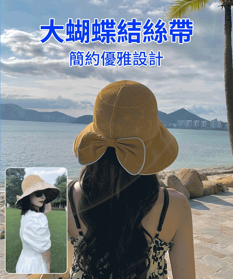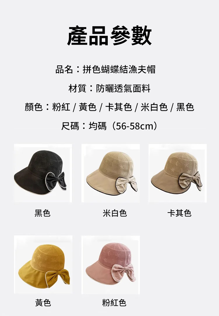 拼色蝴蝶結漁夫帽女