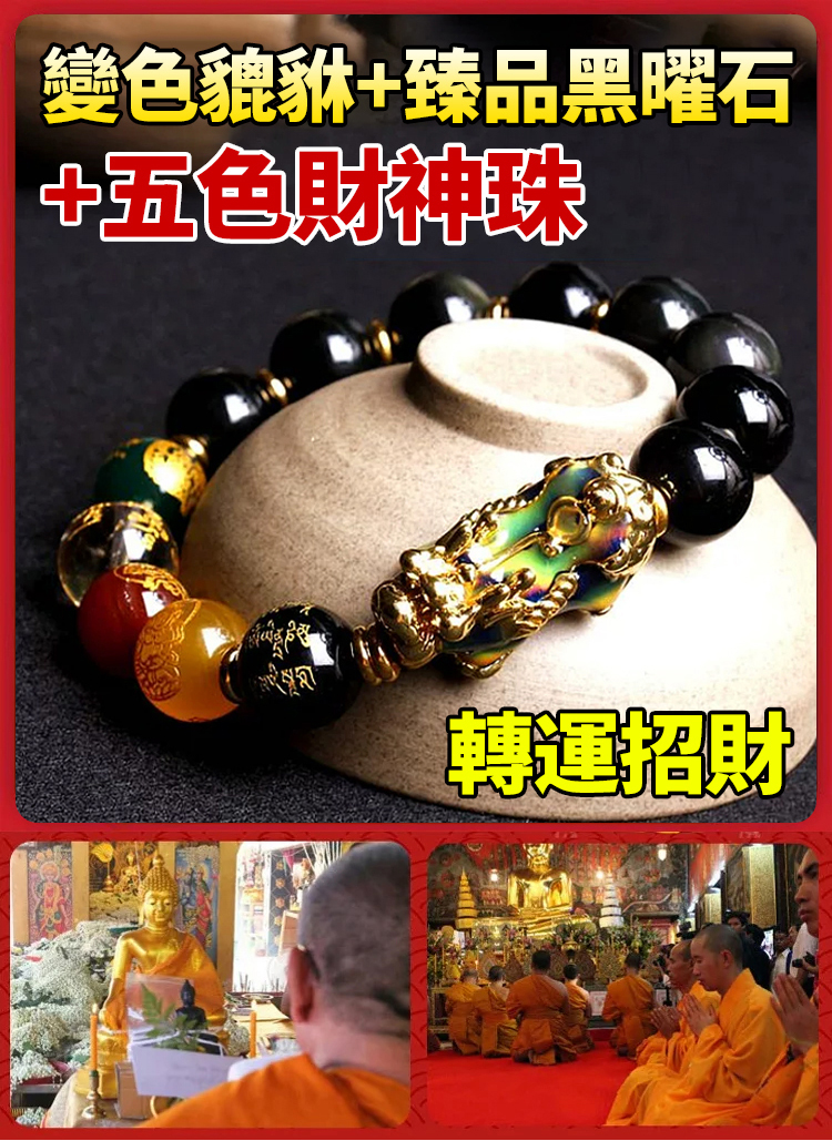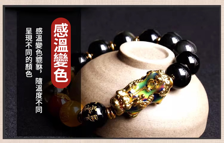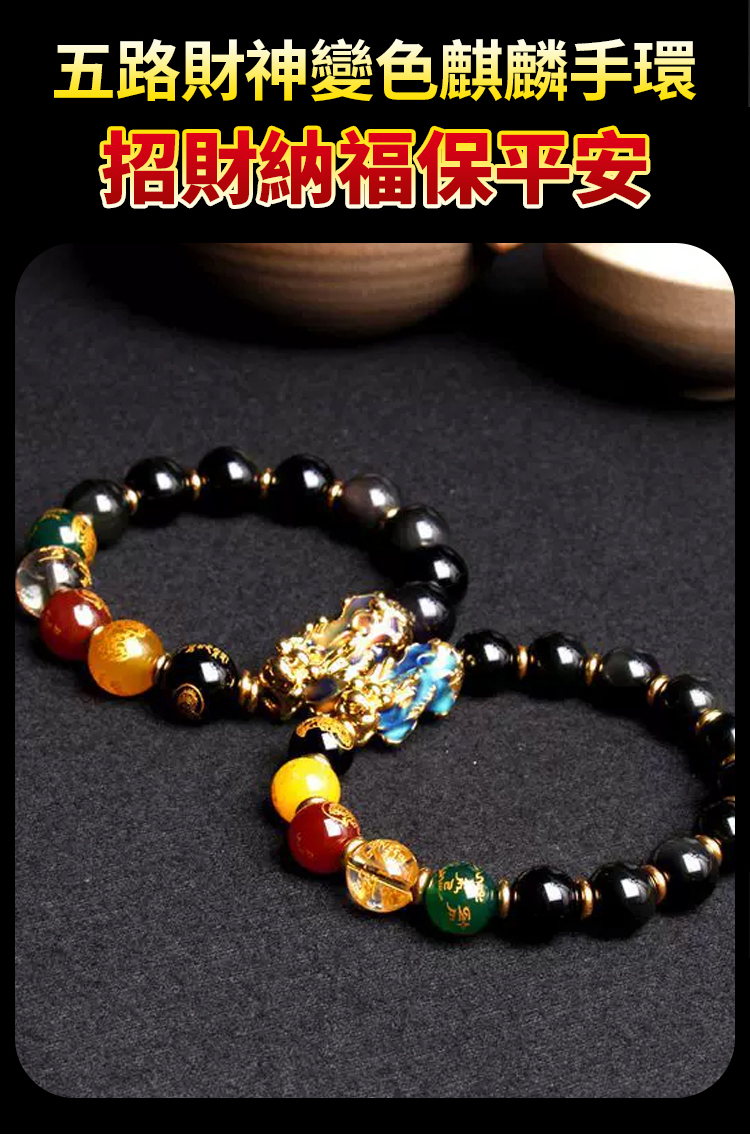 【台灣熱銷】黑曜石貔貅五路財神手串 招財辟邪 文化設計 全家適用