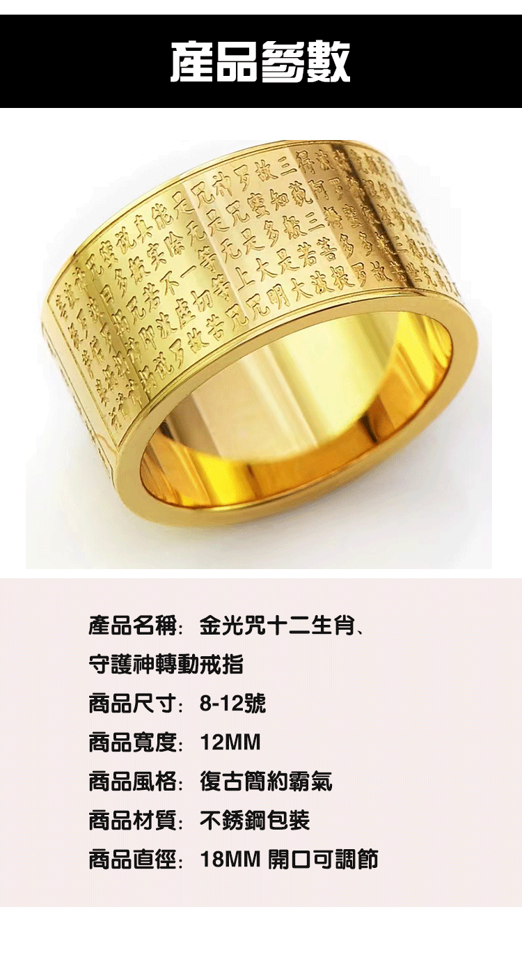 金光咒十二生肖守護神轉動戒指